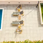 A vendégek elmerülhetnek a kinti úszómedencében.